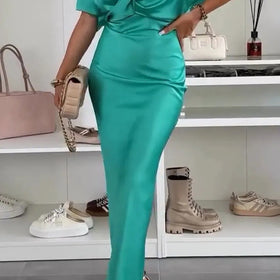 Verleihen Sie Ihrem Look mit unserem knielangen Satin-Kleid mit Kreuz-Design einen Hauch von Eleganz. Dieses Kleid ist ideal für besondere Anlässe oder einen schicken Abend mit Freunden.