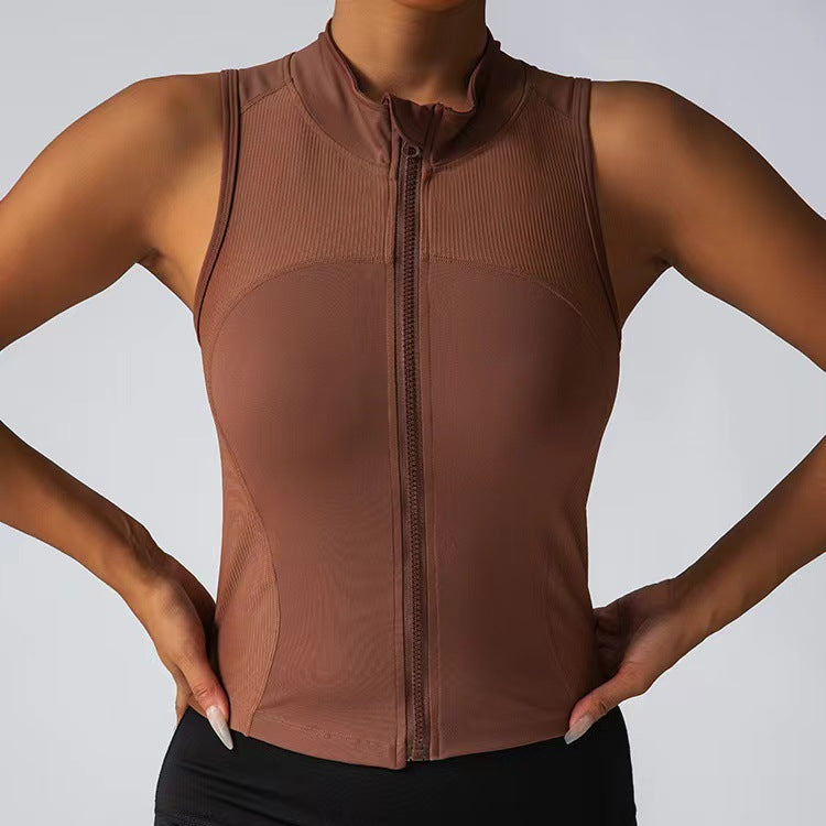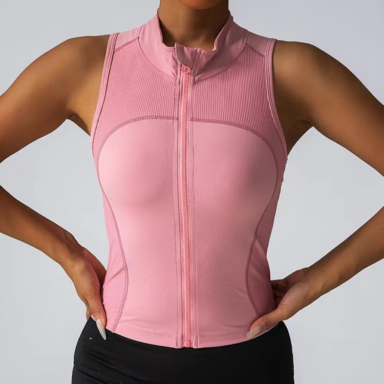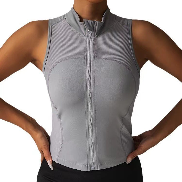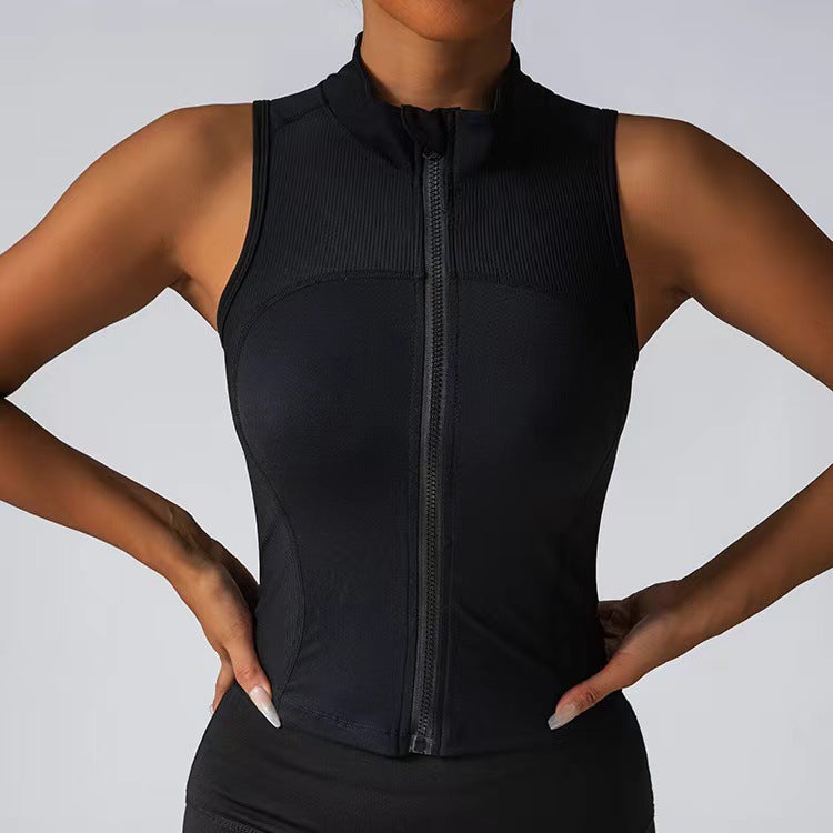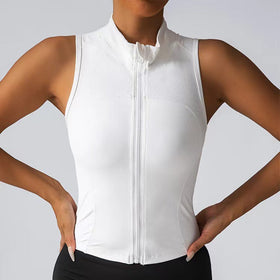 Damen Körperbetonendes Sportoberteil mit Reißverschluss und Stehkragen Amawinc