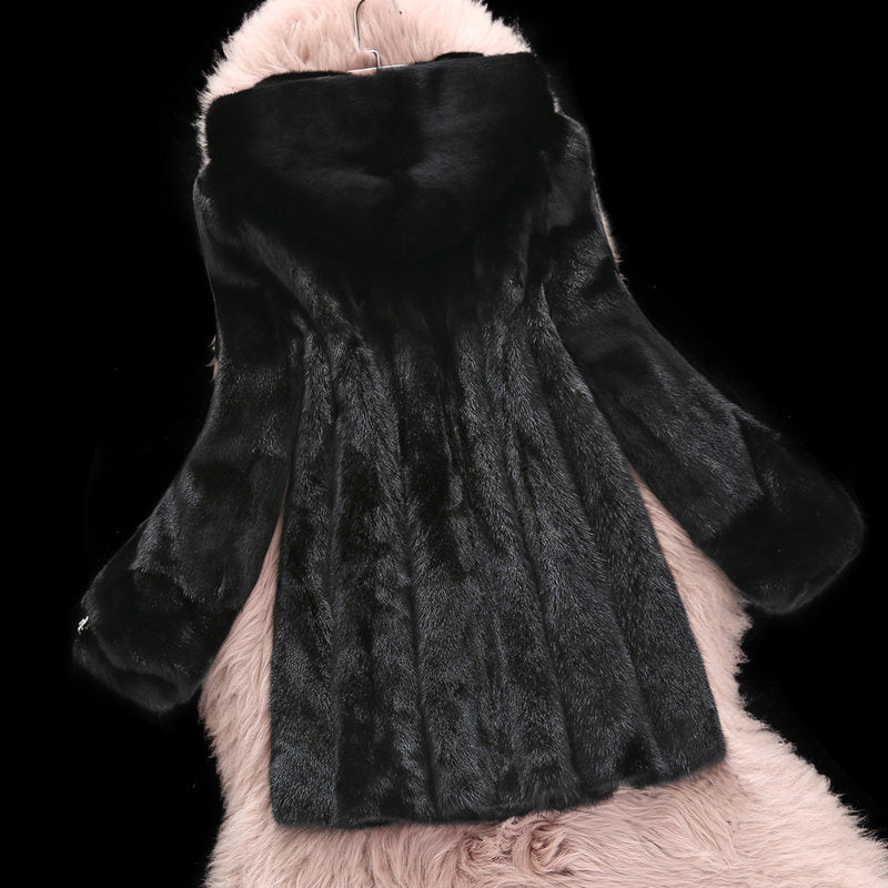 Damen Kunstfell Mantel mit eleganter Kapuze und klassischem Schnitt Amawinc