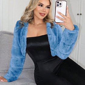 Damen Kurze Kunstpelzjacke mit breiten Ärmeln Amawinc