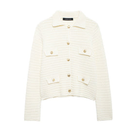 Damen Kurze Strickjacke mit Knopfdetails und aufgesetzten Taschen Amawinc