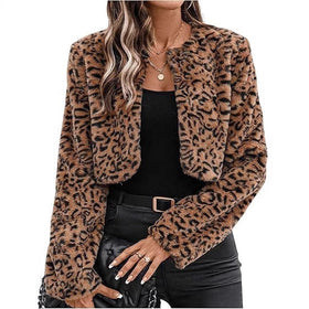 Damen Kurzfelljacke im modernen Leopardenmuster Amawinc