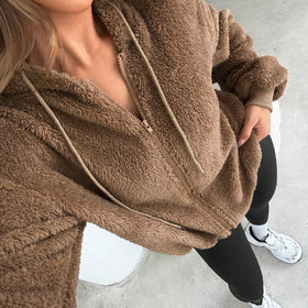 Damen Kuschelige Fleece-Jacke mit Känguru-Tasche und Kapuze Amawinc