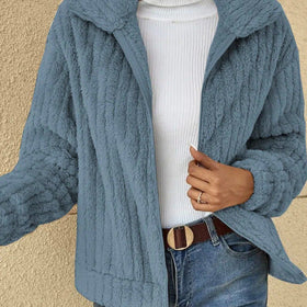 Damen Kuschelige Fleecejacke mit hohem Kragen und texturiertem Design Amawinc