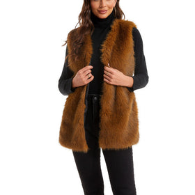 Damen Kuschelige Kunstfell-Weste mit offenem Design und seitlichen Taschen Amawinc