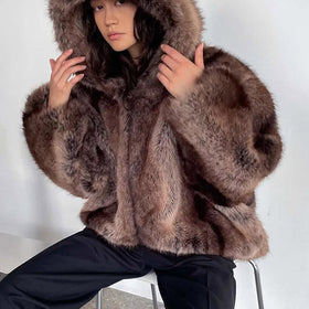 Damen Kuschelige Kunstpelzjacke mit Kapuze Amawinc