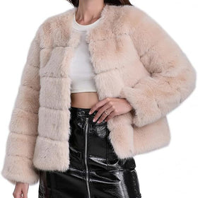 Damen Kuschelige Kunstpelzjacke mit modischem Puffärmel-Design Amawinc