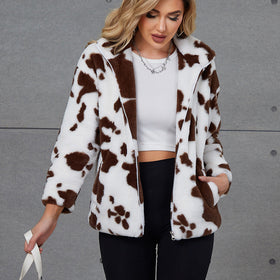 Damen Kuschelige Kunstpelzjacke mit tierischem Muster Amawinc