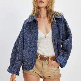 Damen kuschelige Steppjacke mit großem Kragen Amawinc