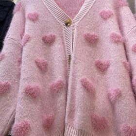 - Verspieltes Design: Das Herzmotiv verleiht der Strickjacke einen verspielten, romantischen Touch, perfekt für die kalte Jahreszeit.
