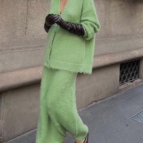 Entdecken Sie unser stilvolles Damen Set, das aus einer kuscheligen Strickjacke und einem eleganten wadenlangen Rock besteht. Beide Teile sind ideal für den Übergang und bieten höchsten Tragekomfort, ohne auf modisches Design zu verzichten.