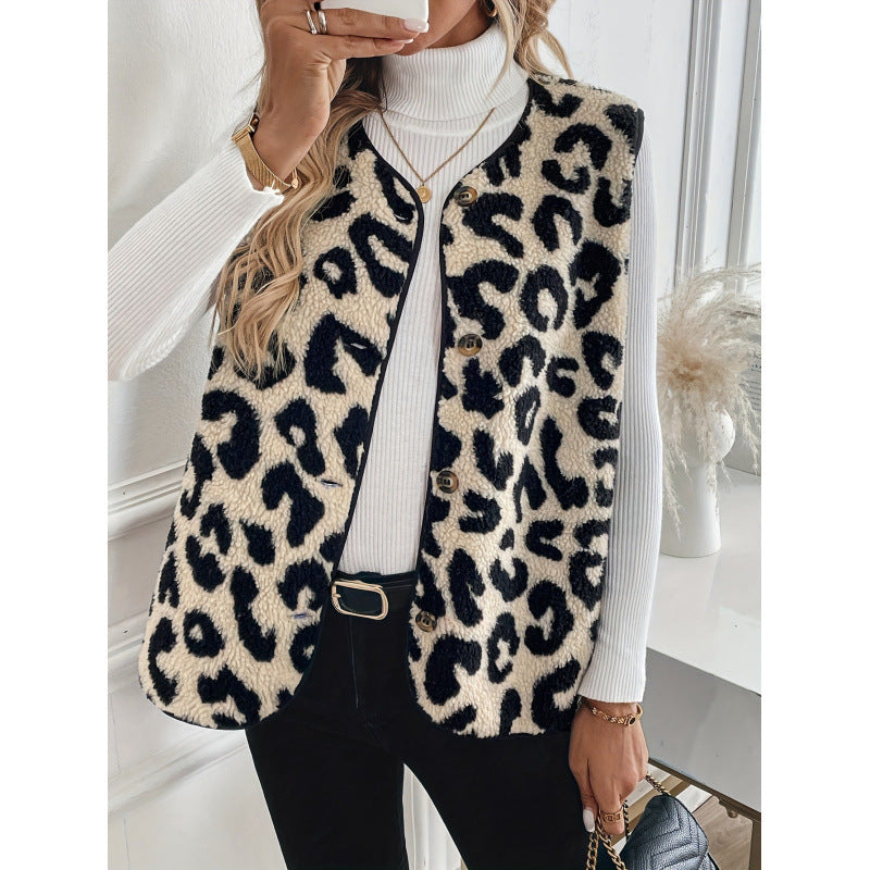 Damen Kuschelige Weste mit Leo-Muster Amawinc