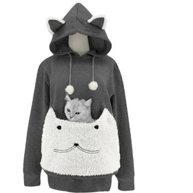 Damen Kuscheliger Kapuzenpullover mit Katzenmotiv und praktischer Känguru-Tasche Amawinc