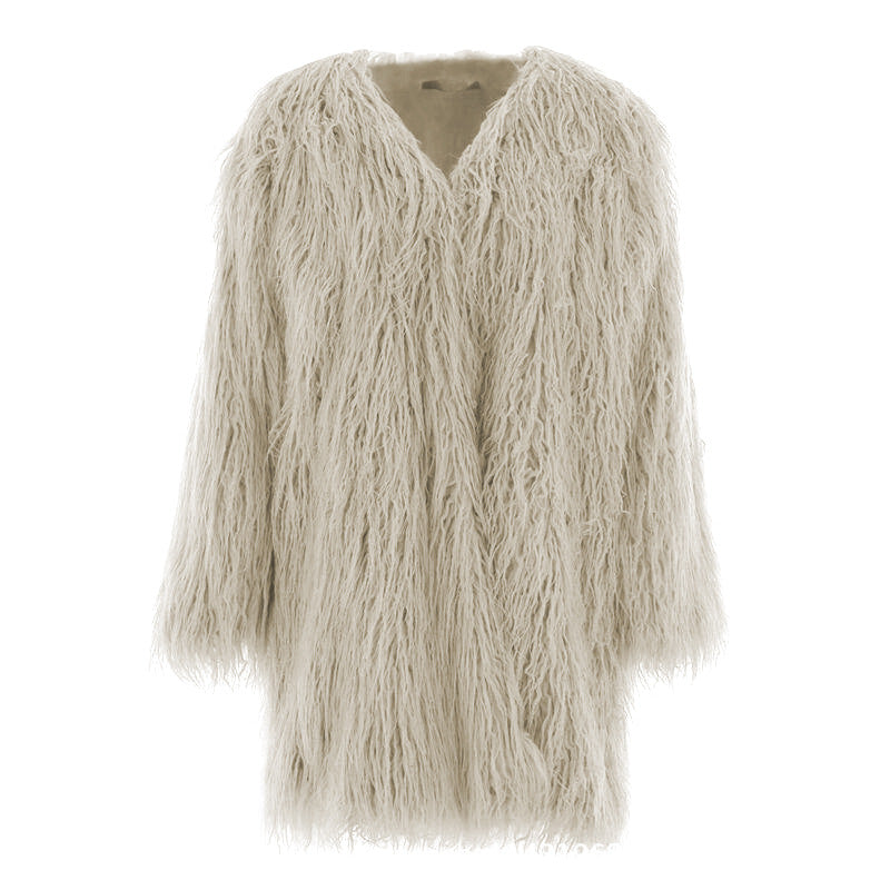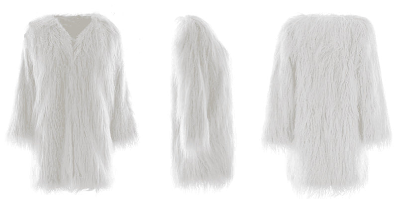 Damen Kuscheliger Langmantel aus flauschigem Kunstpelz Amawinc