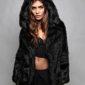 Damen Kuscheliger Pelzmantel mit Kapuze und Katzenohren Amawinc