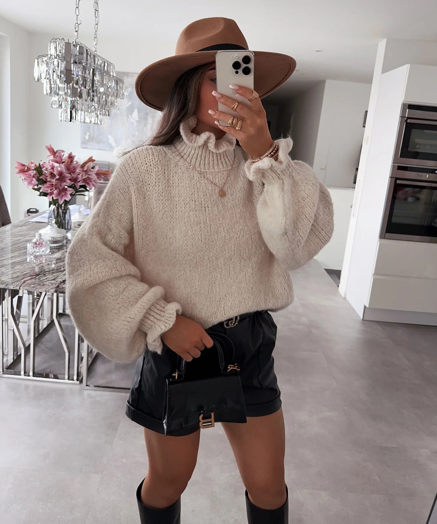 Entdecken Sie die perfekte Kombination aus Stil und Komfort mit unserem Damen kuscheligen Rollkragenpullover. Dieser Pullover ist nicht nur gemütlich, sondern auch ein echtes Fashion-Statement. Mit weiten Ärmeln und einem strukturierten Design bietet er eine besondere Note, die Sie lieben werden.