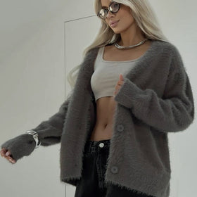 Damen Kuscheliger Strickjacke mit modernen Knopfdetails und lässigem Schnitt Amawinc
