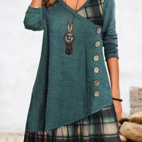 Damen-Langarm-Karierkleid mit Knopfleiste