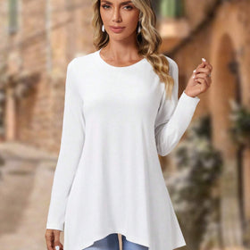 Entdecken Sie unser elegantes Damen Langarm-Oberteil mit asymmetrischem Schnitt, ideal für einen stilvollen und lässigen Look. Hergestellt aus hochwertigem Viskosematerial, bietet dieses Oberteil nicht nur einen angenehmen Tragekomfort, sondern auch eine schmeichelhafte Silhouette.