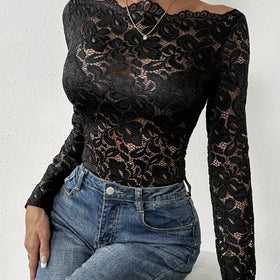Damen Langärmliges Spitzenoberteil mit romantischem Design Amawinc