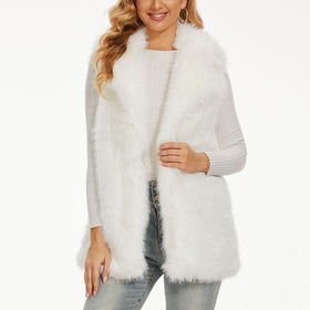 Damen Lange Kunstfell-Weste mit hohem Kragen und weichem Innenfutter Amawinc