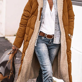 Damen Lange Steppjacke mit kuscheligem Innenfutter und Kapuze Amawinc