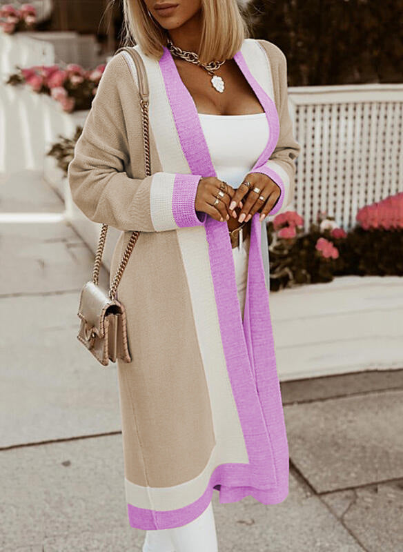 Damen lange Strickjacke mit Farbblockdesign und offenen Front Amawinc