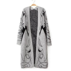 Damen Lange Strickjacke mit kunstvollem Muster Amawinc