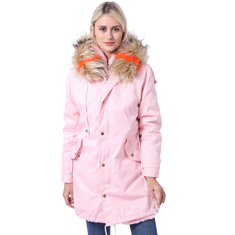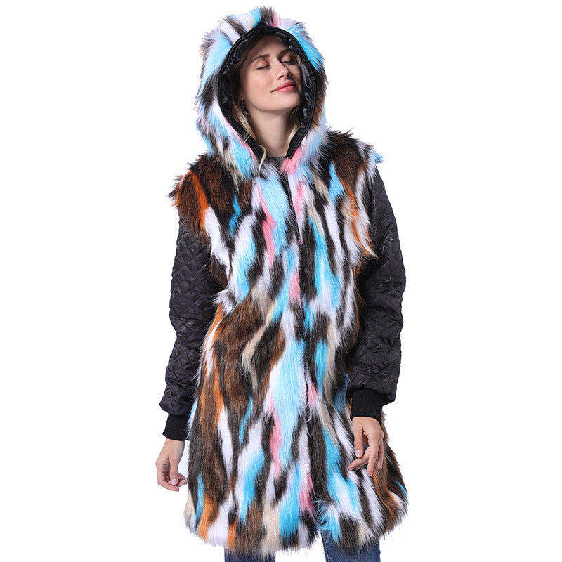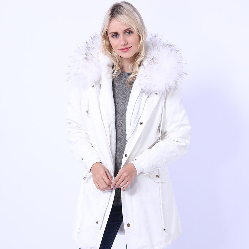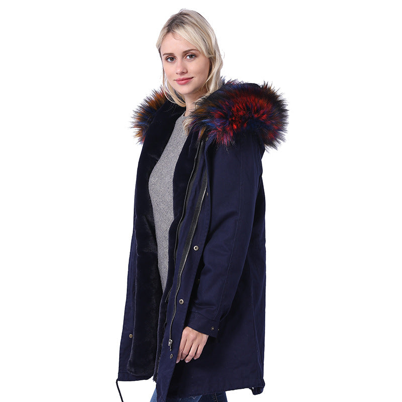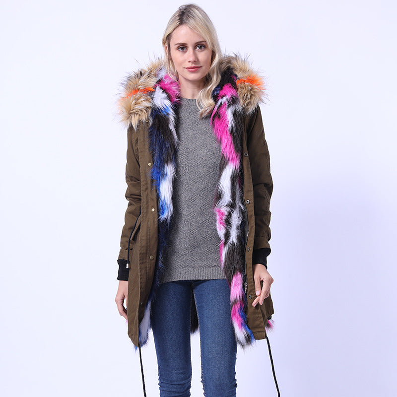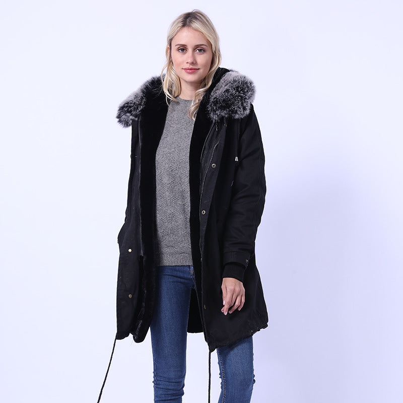 Damen Langmantel mit dekorativem Kunstfellkragen Amawinc