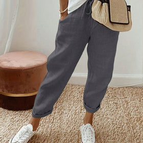 Damen Lässige Leinen-Hose mit elastischem Bund und praktischen Taschen Amawinc