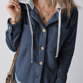 Damen lässige Rippenstruktur Hemdjacke mit Kapuze Amawinc