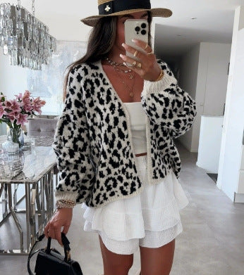 Damen lässige Strickjacke im Leopardenmuster Amawinc