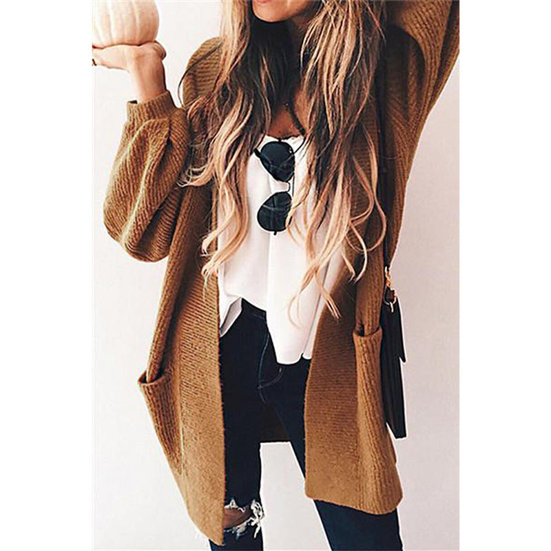 Damen lässige Strickjacke mit offenen Taschen und U-Förmigem Schnitt Amawinc
