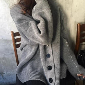 Damen lässige Strickjacke mit übergroßem Schnitt und großen Knöpfen Amawinc