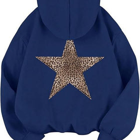Damen lässiger Kapuzenpullover mit leopardem Muster auf Stern Amawinc