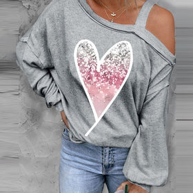 Damen lässiger Oversized Pullover mit herzförmigem Glitzer-Design Amawinc
