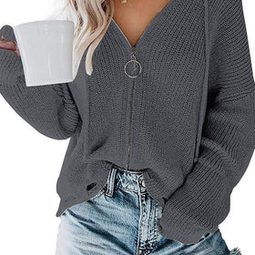 Damen Lässiger Pullover mit modernem Reißverschluss und weitem Schnitt Amawinc