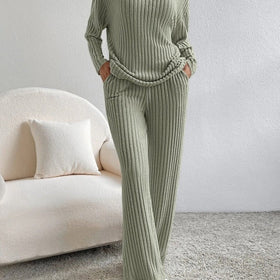 Dieser Strickanzug verbindet Stil und Funktionalität, sodass Sie sich jederzeit wohlfühlen können. Ideal für entspannte Stunden oder als lässiges Outfit für zu Hause.