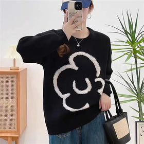 Damen lässiger Strickpullover mit floralem Motiv Amawinc