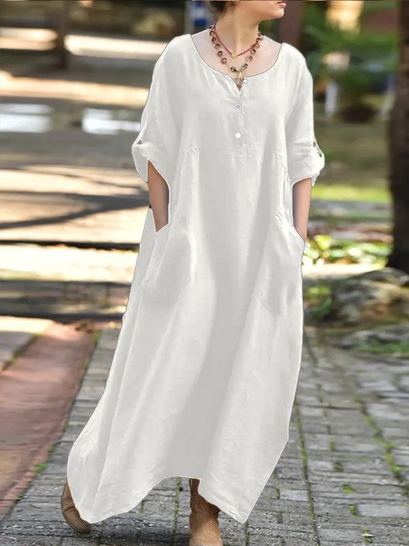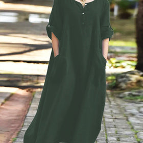Damen lässiges Maxikleid mit praktischen Taschen und Knopfdetails Amawinc
