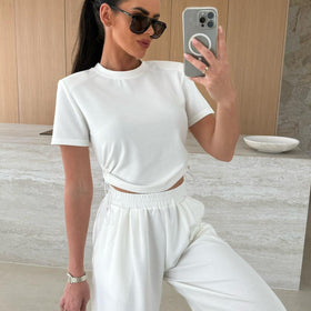 Damen lässiges Set aus Crop-Top und Jogginghose Amawinc