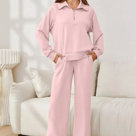 Damen lässiges Zweiteiler-Set mit Reißverschluss und Eingrifftaschen Amawinc