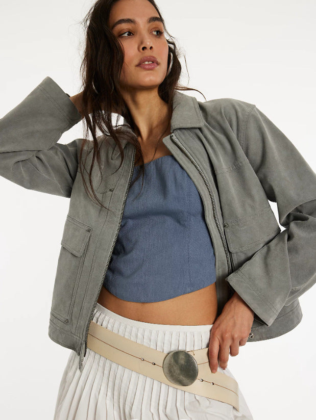 Unsere Damen Leichte Utility-Jacke kombiniert Stil und Funktionalität, perfekt für den modernen Alltag. Mit ihrem lässigen, aber eleganten Design ist sie vielseitig und ideal für verschiedene Anlässe.