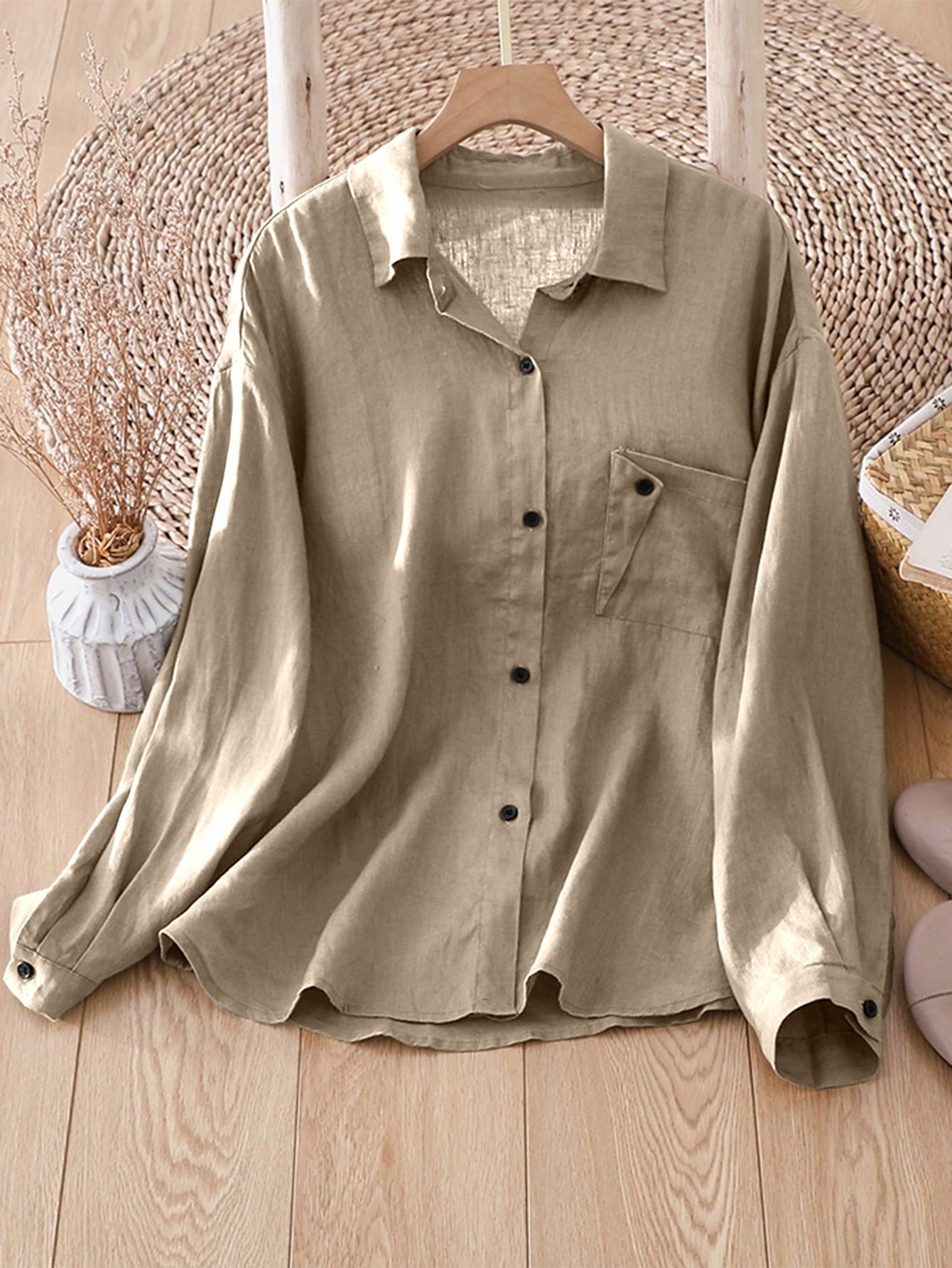 Damen Leichtes Hemd mit lässigem Schnitt und Brusttasche Amawinc
