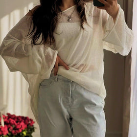 Damen luftiger Oversize-Strickpullover mit weitem Schnitt und transparentem Gewebe Amawinc