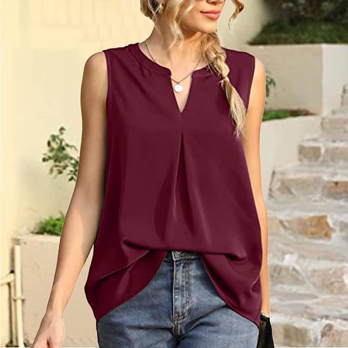 Damen luftiges ärmelloses Oberteil mit modischem V-Ausschnitt Amawinc