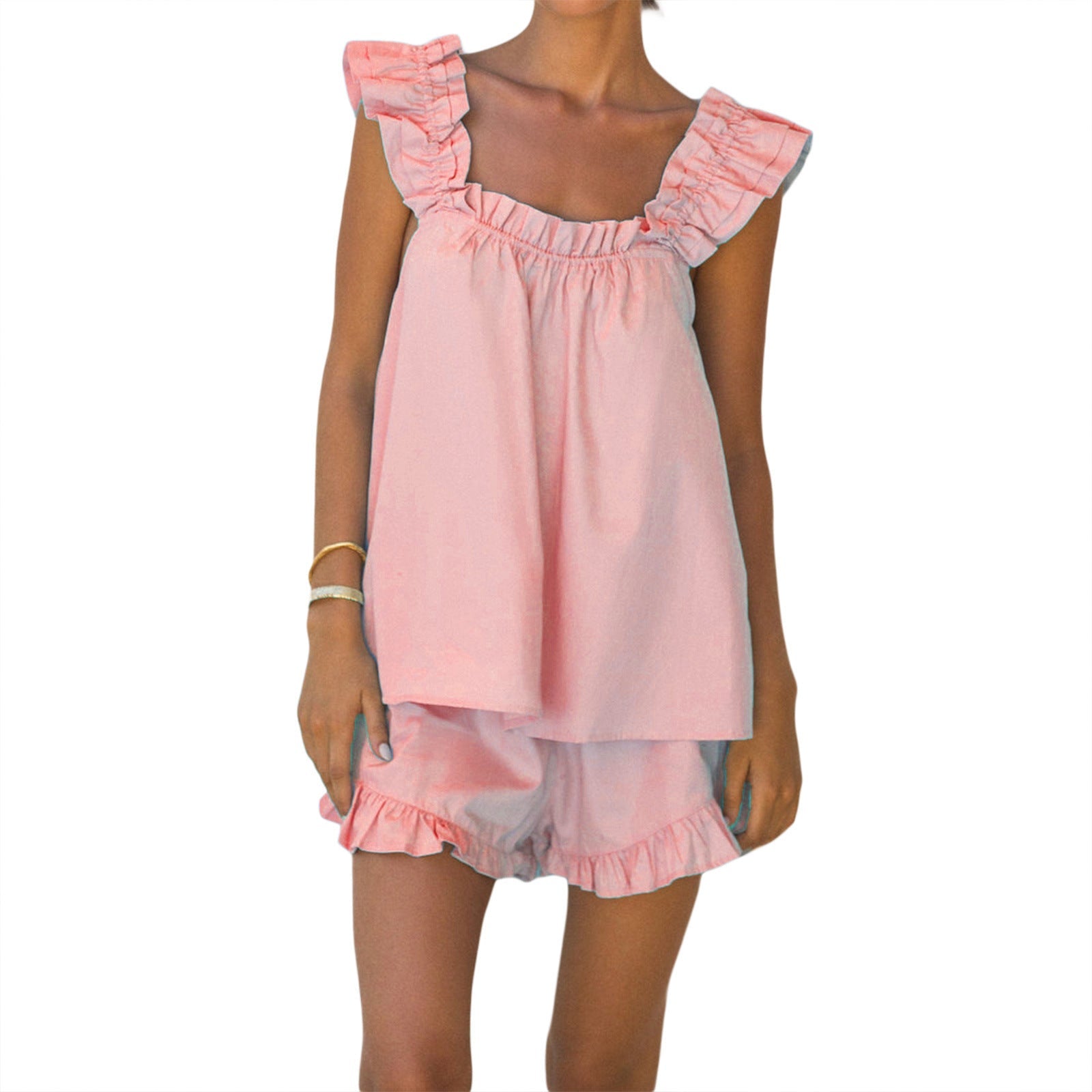 Damen luftiges Top mit Rüschendetails und lässigen Shorts Amawinc