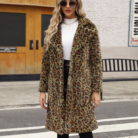 Damen Luxuriöser Kunstfellmantel mit Leopard-Design Amawinc