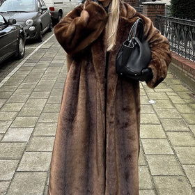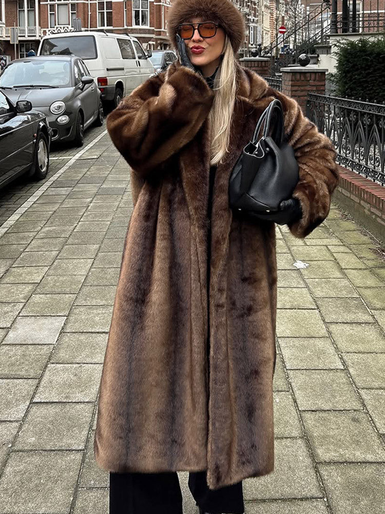Damen Luxuriöser Kunstpelz-Mantel Amawinc