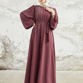 Damen Maxi-Kleid mit funkelnden Applikationen und elegantem Gürtel Amawinc